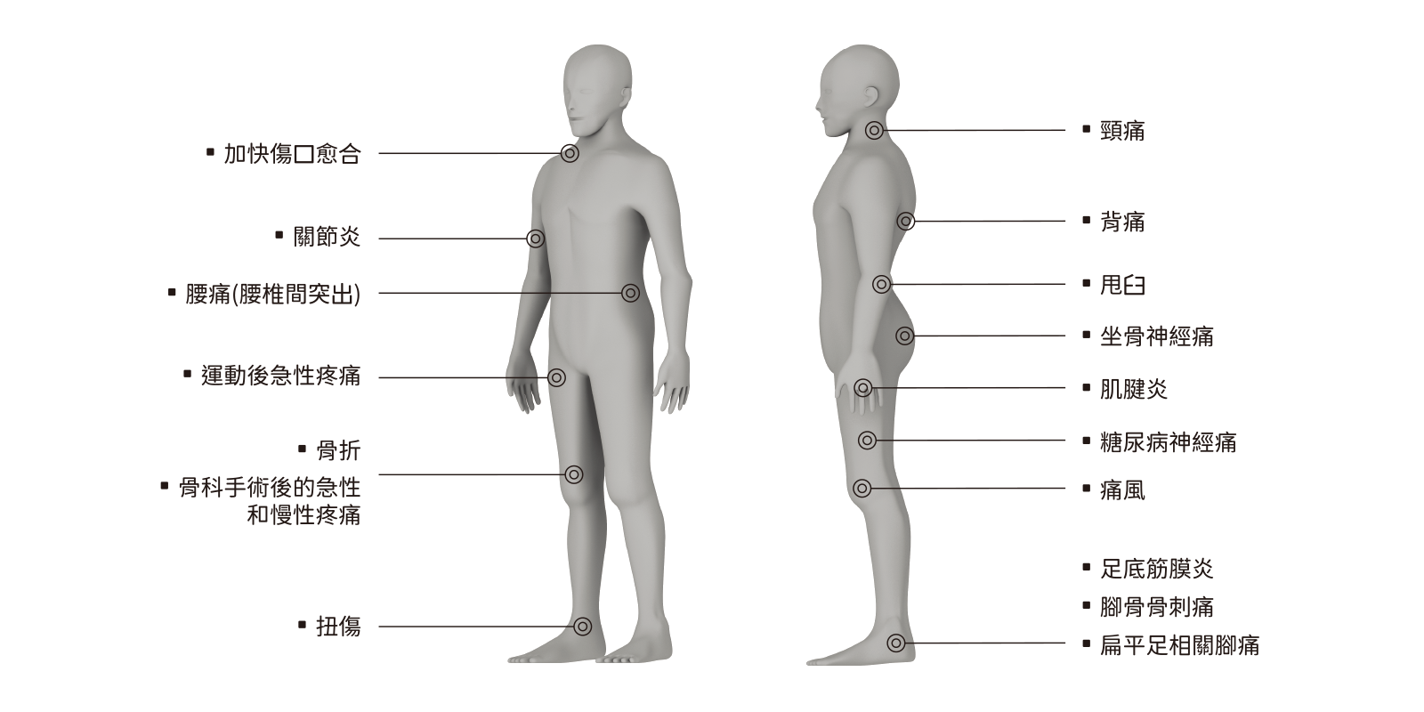 X1 Performance 採用810nm 及980nm 波長的紅光及近紅外線技術,可為人體帶來即時的生理效應,以對抗日常面臨的各種痛症,當中包括: