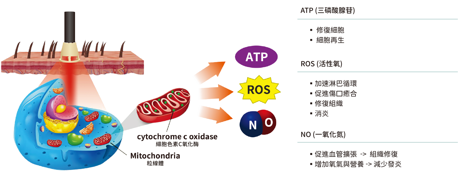 X1 Performance ULTRA 建基於光照原理中的紅光及近紅外線波段來活化粒線體。不同的近紅外線波段可以調節ATP (三磷酸腺苷)、ROS (活性氧)及NO (一氧化氮),提升細胞能量及促進組織修復,達到加快癒合、減輕發炎和緩解疼痛的功效。